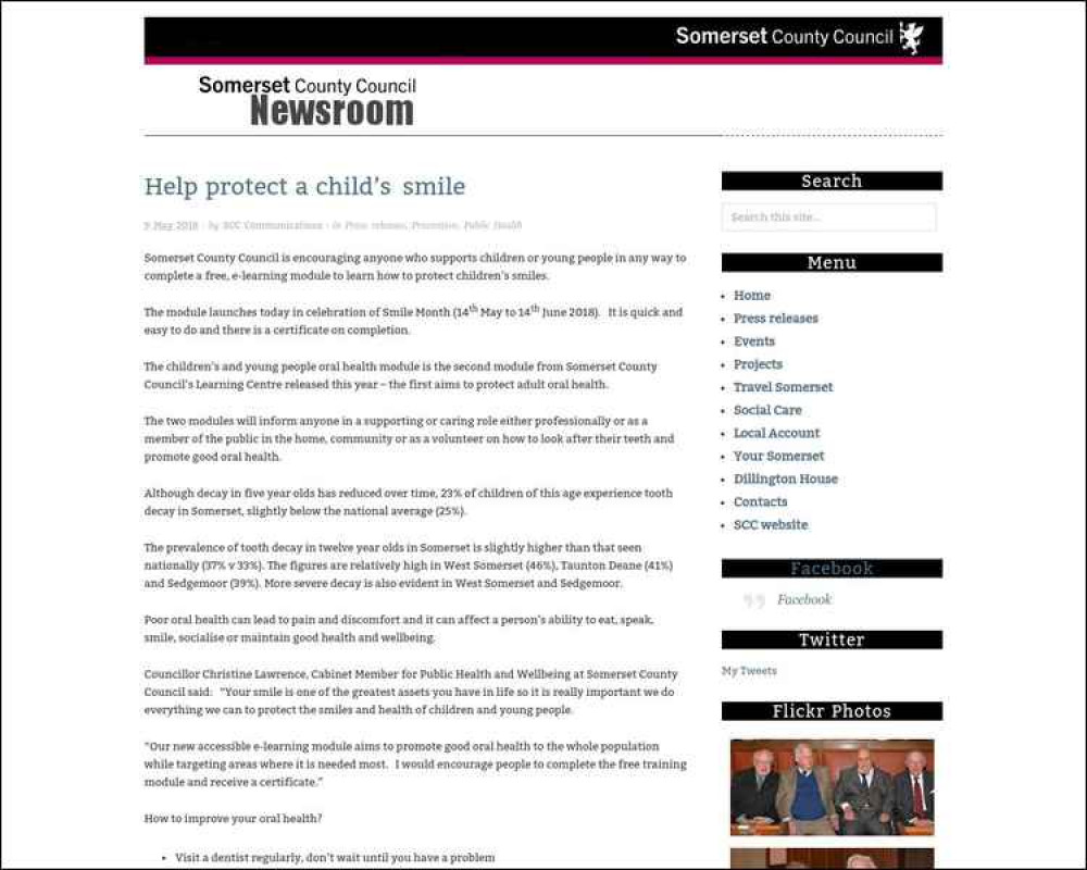 Councillor Christine Lawrence, Cabinet Member for Public Health and Wellbeing at Somerset County Council said: "Your smile is one of the greatest assets you have in life so it is really important we do everything we can to protect the smiles and health of children and young people."Our new accessible e-learning module aims to promote good oral health to the whole population while targeting areas where it is needed most. I would encourage people to complete the free training module and receive a certificate."