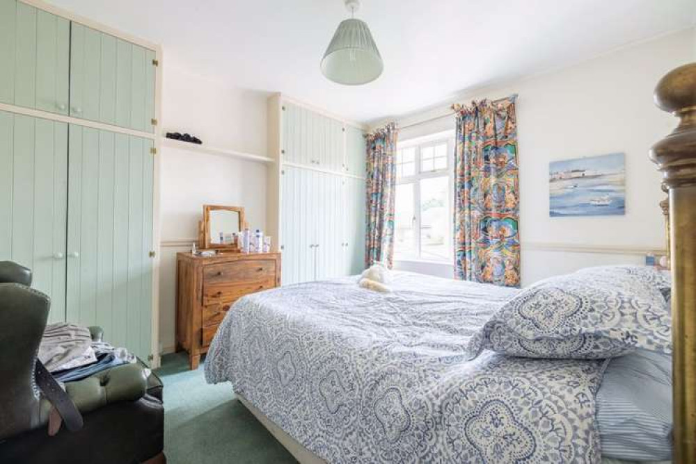 At the far end of the house is a garden room/utility room with a Belfast sink, and cupboards housing the boiler, dishwasher and washing machine. There's also a store cupboard with space for hanging coats.